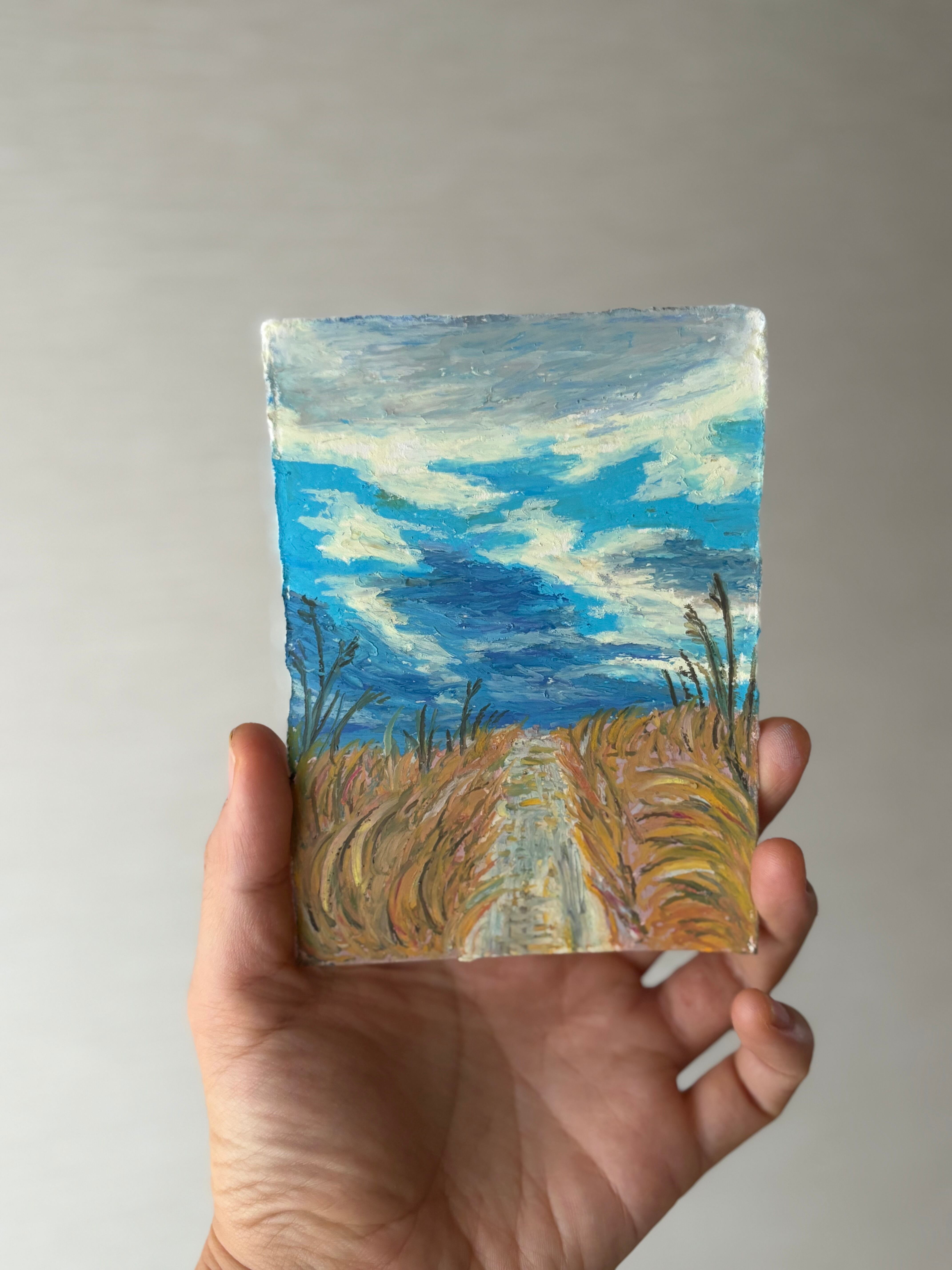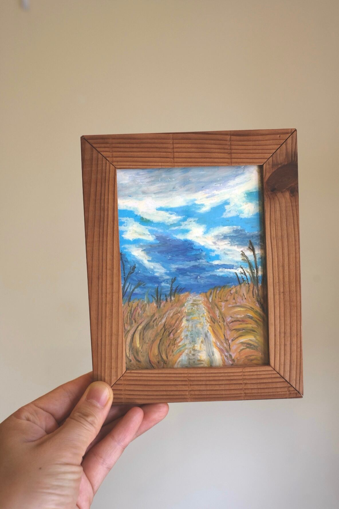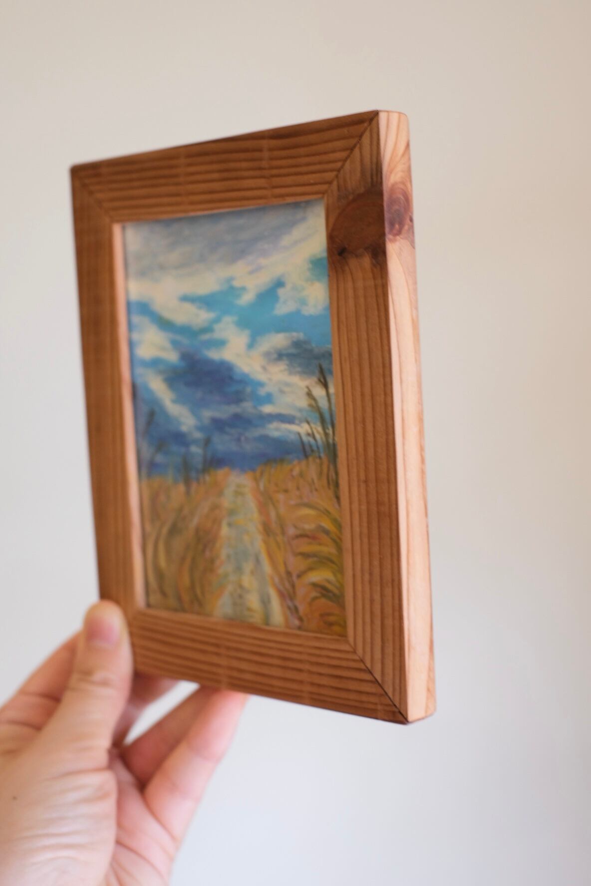 ※廃材額縁は一点もので、この絵のための私が作りました。詳細はブログをお読みください。