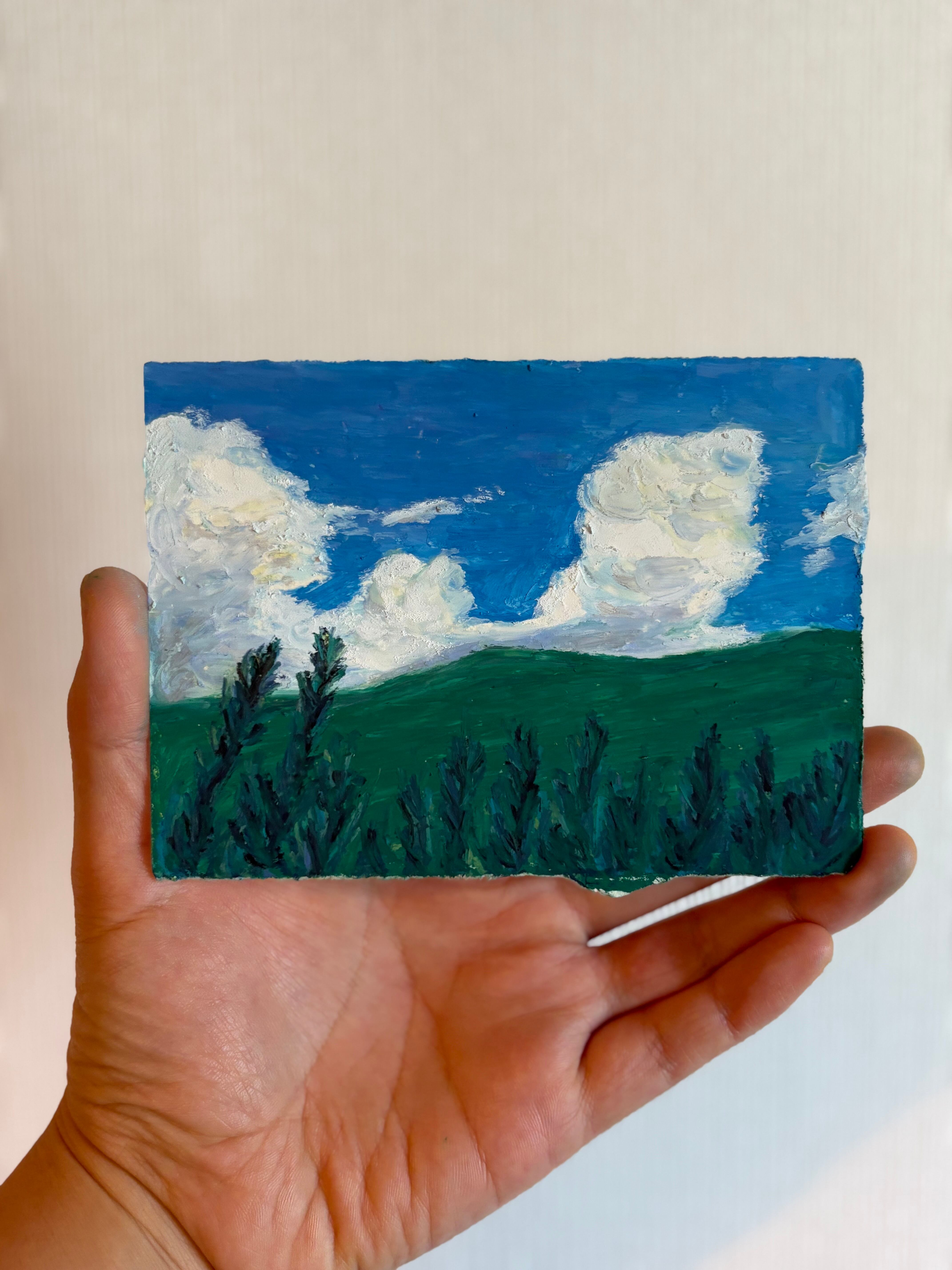 ※一点ものの原画です。ポストカードより小さめのサイズです。額縁は廃材を使っているので、ひとつひとつ味があります。捨てられるそうなものを救いました。木材は柿渋を使って染めました。化学薬品を使わずに防虫防腐防水です。