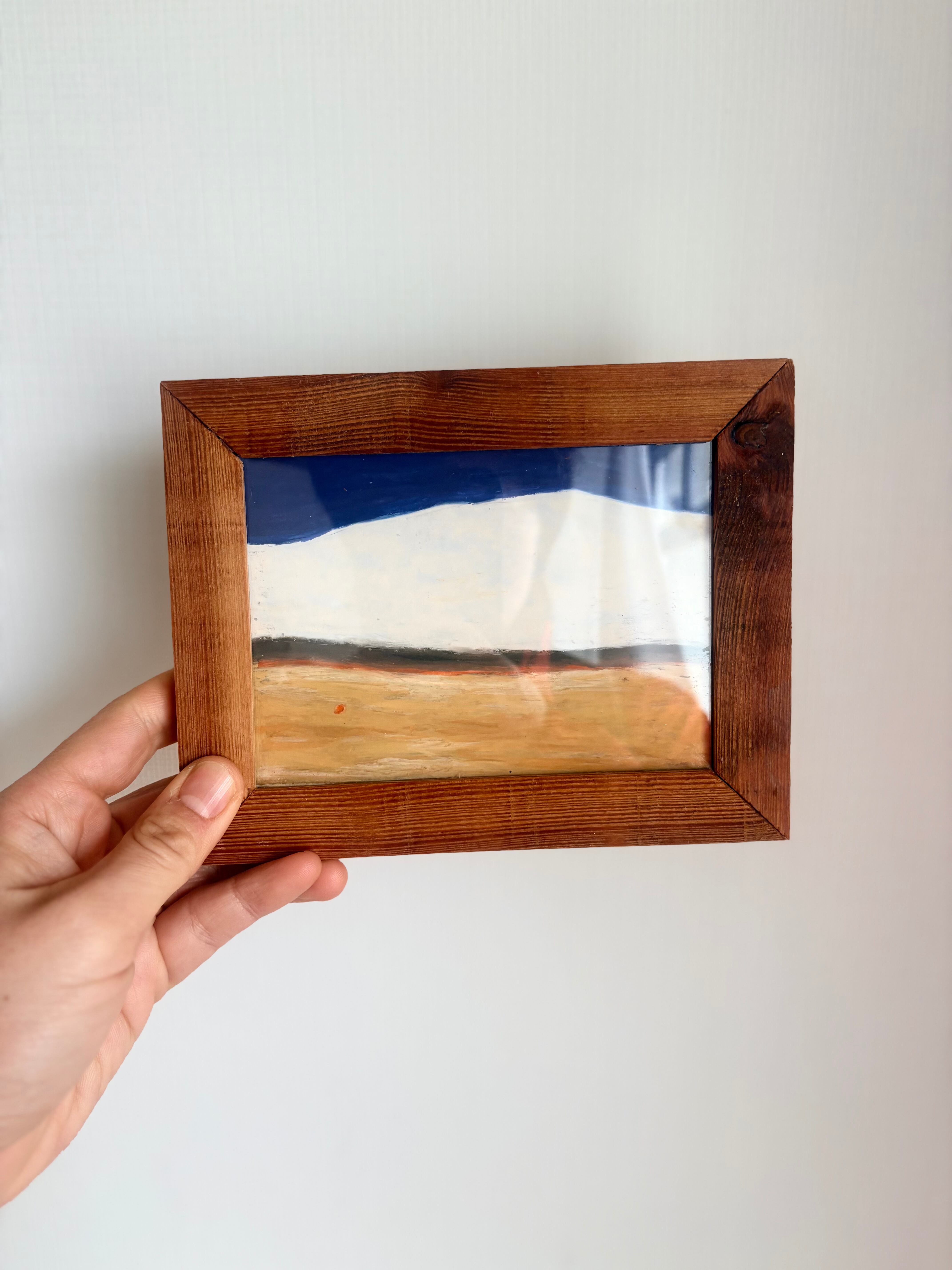 手作りの「廃材額縁」に収めてお届けします。かつてどこかで使われ、役目を終えて捨てられるはずだった木材。 そこにある傷や節、色あせた木目は、その木が過ごしてきた時間の証です。